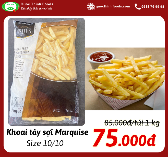 - Khoai tây được lựa chọn kỹ càng, cắt cọng dài, đảm bảo chất lượng, là loại thực phẩm chứa nhiều hàm lượng tinh bột, vitamin, bổ sung khoai tây vào thực đơn hàng ngày giúp bữa ăn thêm đa dạng phong phú hơn, ngoài ra khoai tây là loại thực phẩm tốt cho tim mạch và huyết áp.